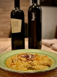 Na večerji se je pridružila tudi Ingrid Mahnič iz kmetije Mahnič in predstavila njihovo penino Istra ter rose vino iz sorte cipro – Porto Rose.